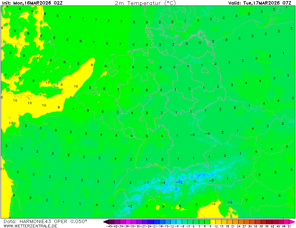 ARPEGEThe selected variable and region is available, but not for 2025-12-06, 07:00. You will switch back to the first available time step. ARPEGE is the global forecast model of the French weather service (Meteo France). It is runs with a maximum resolution of approx. 7 km in Europe and mean global grid spacing of 15 km. WZ offers forecasts up to 102 hours.