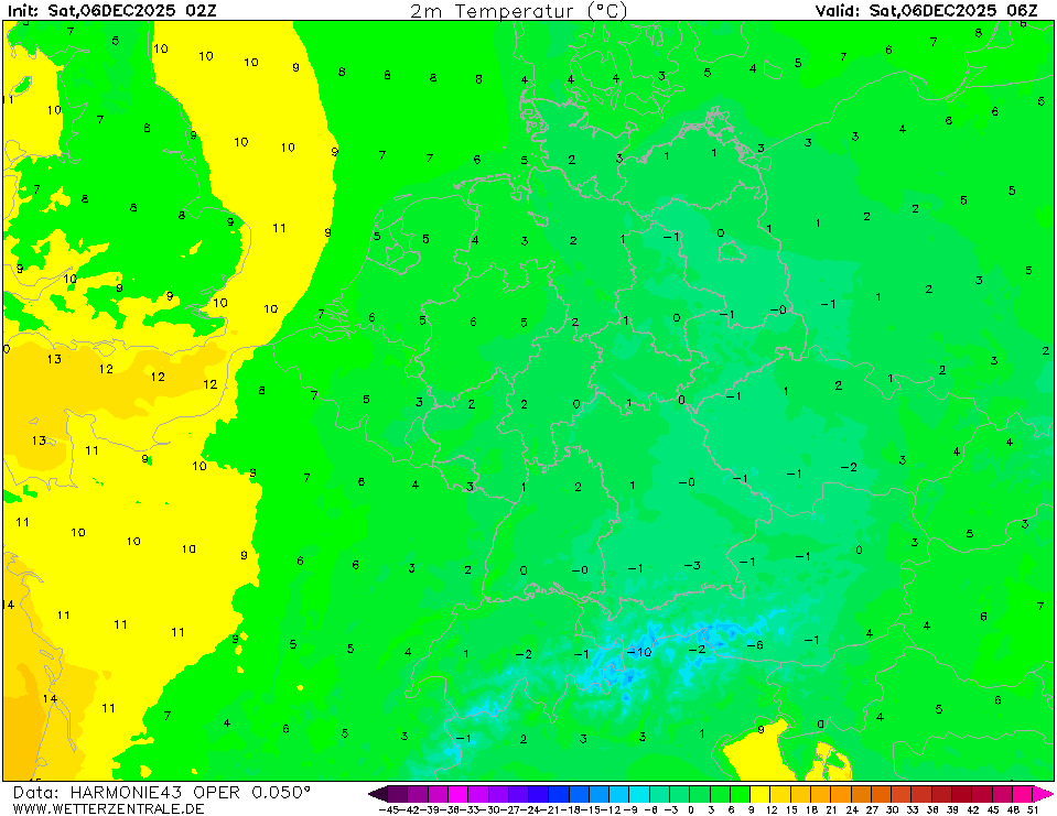 NAVGEMThe selected variable and region is available, but not for 2025-11-10, 06:00. You will switch back to the first available time step. NAVGEM is a model run by the NOAA and serves the US navy with weather forecasts. The WZ maps are based on data that is available from the NCEP server with a grid spacing of 0.5 degree and is updated twice daily (7 and 19 UTC).