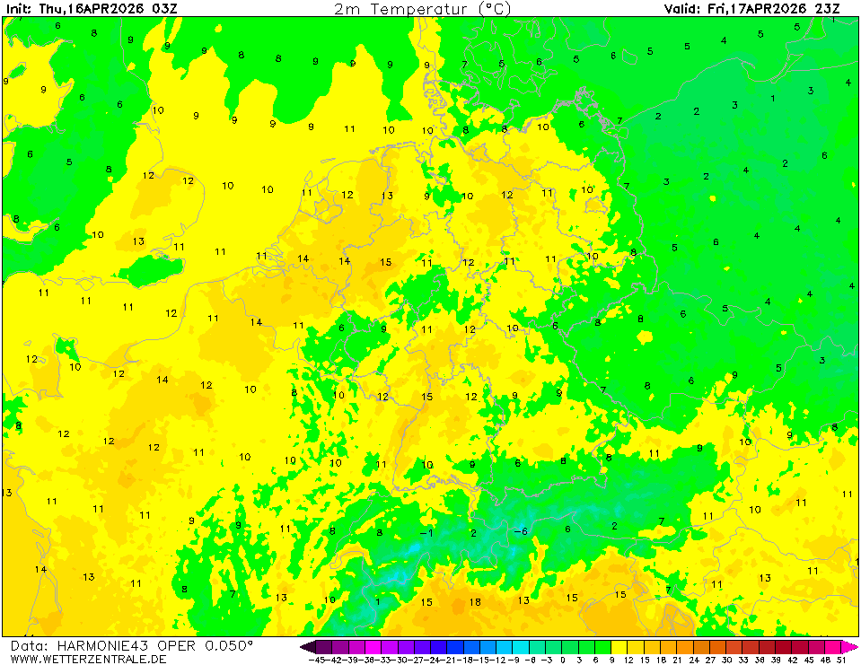 ICONThe selected time, variable and region is available for this model. ICON is the global weather forecast of the German weather service (DWD) with a grid spacing of approx. 13 km globally (Europe nest: 6 km). Model output is available up to 180 hours ahead for the 0Z and 12Z runs, and up to 120 hours for the 6Z and 18Z runs.