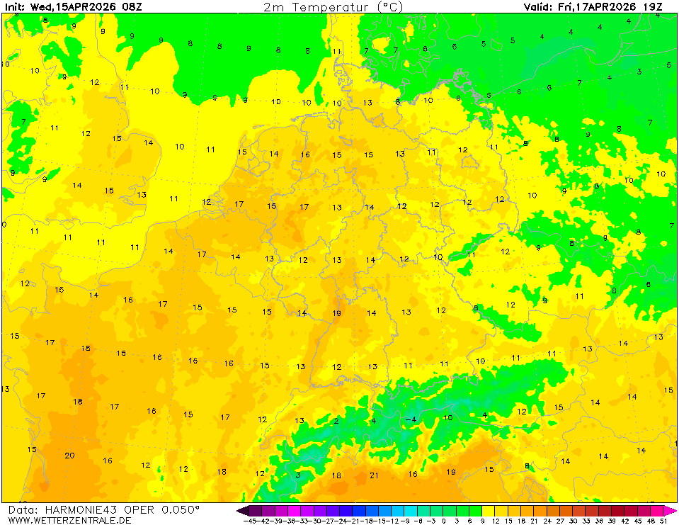 NAVGEMThe selected variable and region is available, but not for 2026-03-15, 19:00. You will switch back to the first available time step. NAVGEM is a model run by the NOAA and serves the US navy with weather forecasts. The WZ maps are based on data that is available from the NCEP server with a grid spacing of 0.5 degree and is updated twice daily (7 and 19 UTC).