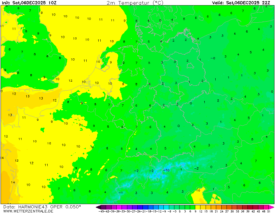 ARPEGEThe selected variable and region is available, but not for 2025-11-10, 22:00. You will switch back to the first available time step. ARPEGE is the global forecast model of the French weather service (Meteo France). It is runs with a maximum resolution of approx. 7 km in Europe and mean global grid spacing of 15 km. WZ offers forecasts up to 102 hours.