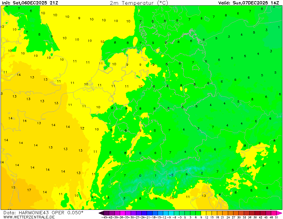 NAVGEMThe selected variable and region is available, but not for 2025-11-08, 14:00. You will switch back to the first available time step. NAVGEM is a model run by the NOAA and serves the US navy with weather forecasts. The WZ maps are based on data that is available from the NCEP server with a grid spacing of 0.5 degree and is updated twice daily (7 and 19 UTC).