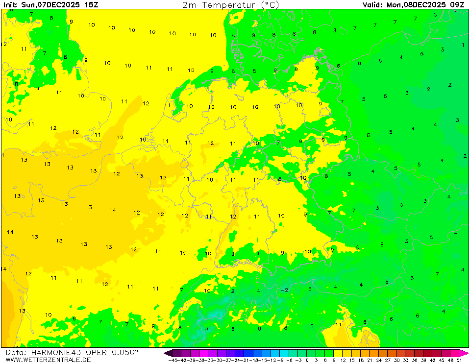 ARPEGEThe selected variable and region is available, but not for 2025-11-15, 09:00. You will switch back to the first available time step. ARPEGE is the global forecast model of the French weather service (Meteo France). It is runs with a maximum resolution of approx. 7 km in Europe and mean global grid spacing of 15 km. WZ offers forecasts up to 102 hours.