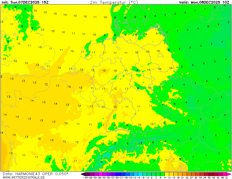 NAVGEMThe selected variable and region is available, but not for 2025-11-08, 10:00. You will switch back to the first available time step. NAVGEM is a model run by the NOAA and serves the US navy with weather forecasts. The WZ maps are based on data that is available from the NCEP server with a grid spacing of 0.5 degree and is updated twice daily (7 and 19 UTC).