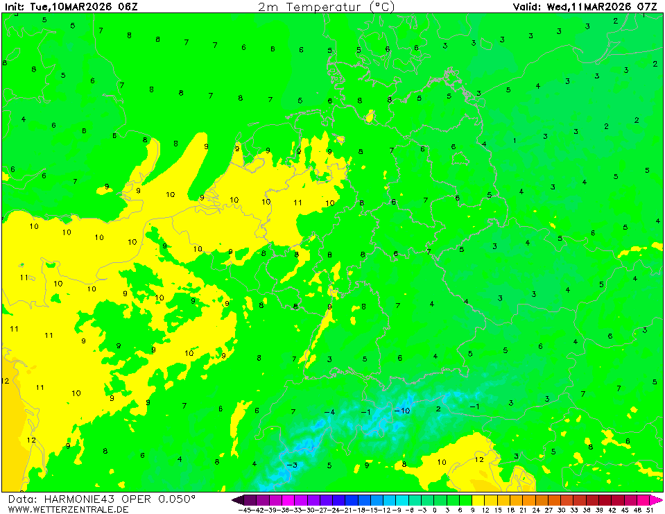 ICONThe selected time, variable and region is available for this model. ICON is the global weather forecast of the German weather service (DWD) with a grid spacing of approx. 13 km globally (Europe nest: 6 km). Model output is available up to 180 hours ahead for the 0Z and 12Z runs, and up to 120 hours for the 6Z and 18Z runs.