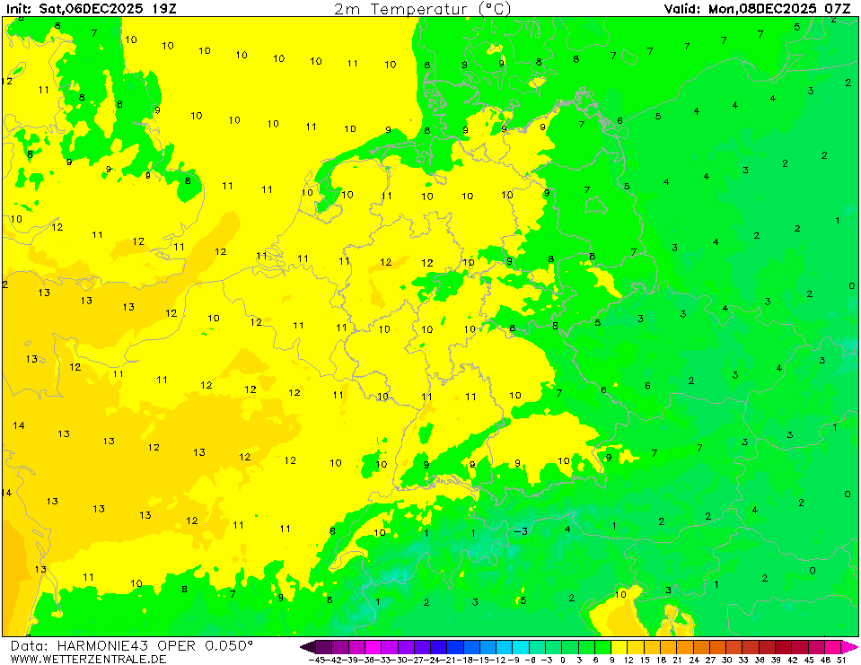 NAVGEMThe selected variable and region is available, but not for 2025-11-10, 07:00. You will switch back to the first available time step. NAVGEM is a model run by the NOAA and serves the US navy with weather forecasts. The WZ maps are based on data that is available from the NCEP server with a grid spacing of 0.5 degree and is updated twice daily (7 and 19 UTC).