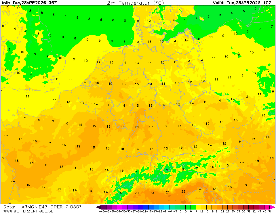 ICONThe selected variable and region is available, but not for 2026-04-17, 10:00. You will switch back to the first available time step. ICON is the global weather forecast of the German weather service (DWD) with a grid spacing of approx. 13 km globally (Europe nest: 6 km). Model output is available up to 180 hours ahead for the 0Z and 12Z runs, and up to 120 hours for the 6Z and 18Z runs.