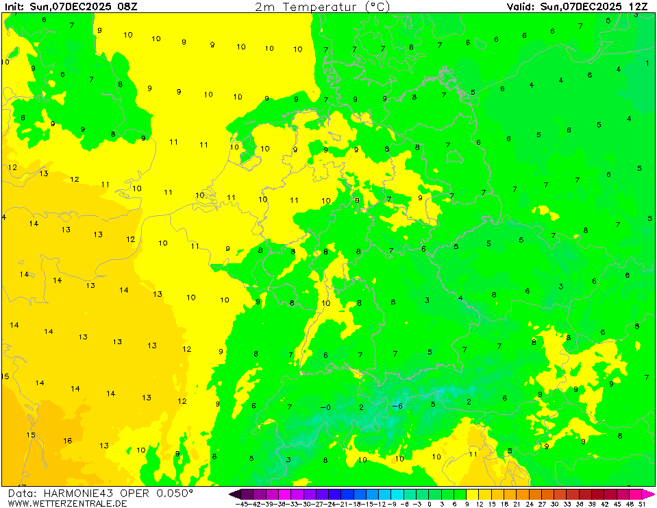 ARPEGEThe selected variable and region is available, but not for 2025-11-11, 12:00. You will switch back to the first available time step. ARPEGE is the global forecast model of the French weather service (Meteo France). It is runs with a maximum resolution of approx. 7 km in Europe and mean global grid spacing of 15 km. WZ offers forecasts up to 102 hours.