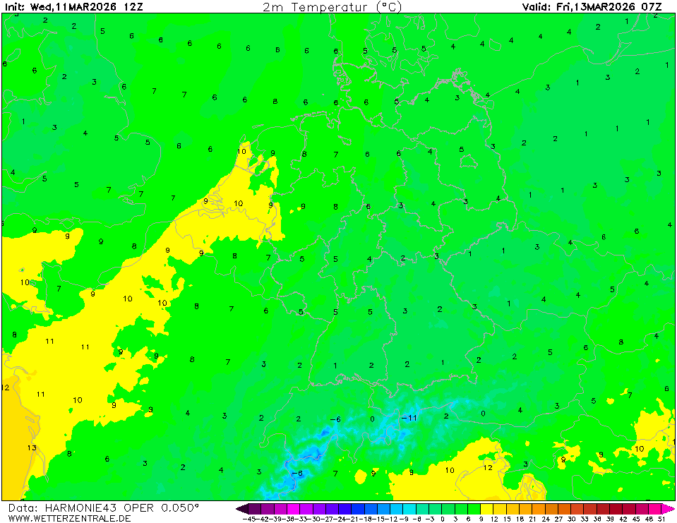 ICONThe selected time, variable and region is available for this model. ICON is the global weather forecast of the German weather service (DWD) with a grid spacing of approx. 13 km globally (Europe nest: 6 km). Model output is available up to 180 hours ahead for the 0Z and 12Z runs, and up to 120 hours for the 6Z and 18Z runs.