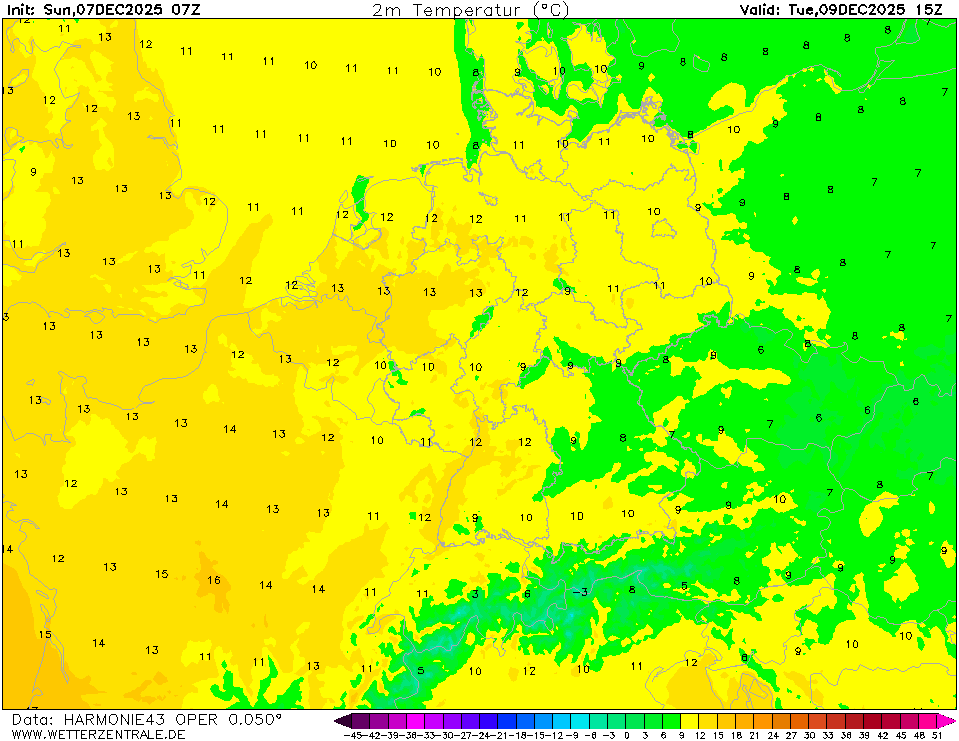 NAVGEMThe selected variable and region is available, but not for 2025-11-13, 15:00. You will switch back to the first available time step. NAVGEM is a model run by the NOAA and serves the US navy with weather forecasts. The WZ maps are based on data that is available from the NCEP server with a grid spacing of 0.5 degree and is updated twice daily (7 and 19 UTC).