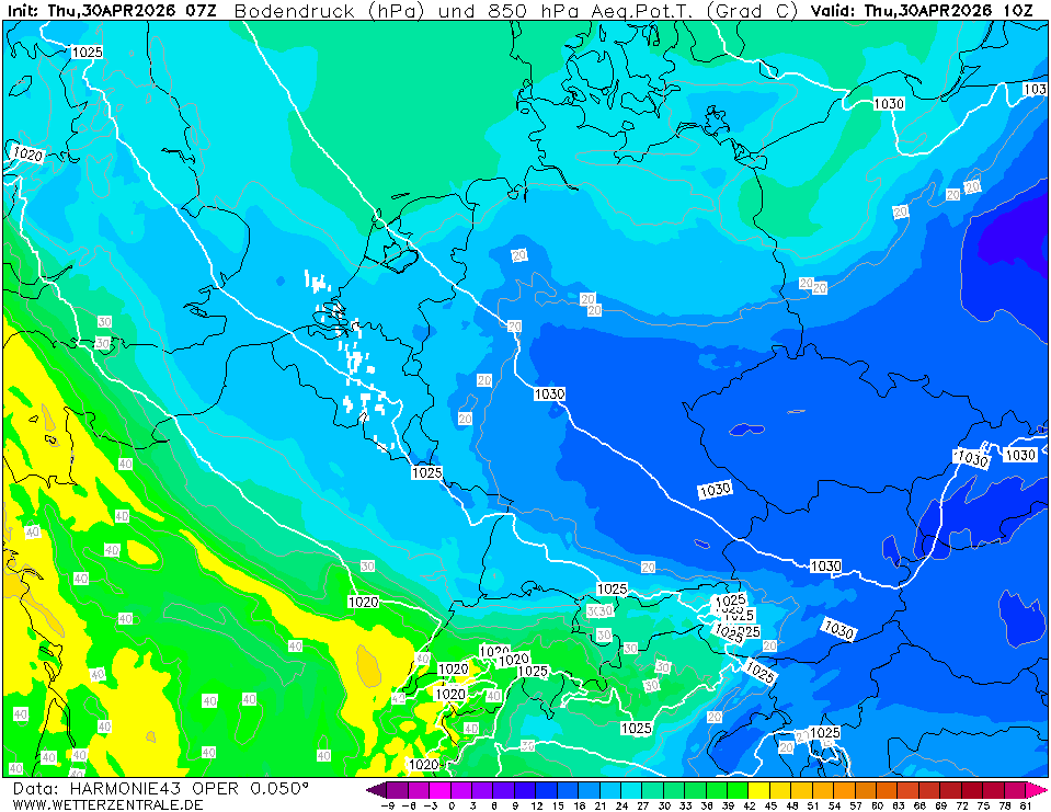 HARMONIE (KNMI-EU)Currently selected. HARMONIE is developed in a european consortium and this is the output provided by the KNMI at the supercomputing facilities in Iceland. The output from Cy43 is available at a rotated lat-lon grid and regridded at our server to a grid spacing of 0.05 degree. These data are the raw data provided by the KNMI. The model is reinitialized every hour and run up to 60 hrs ahead.