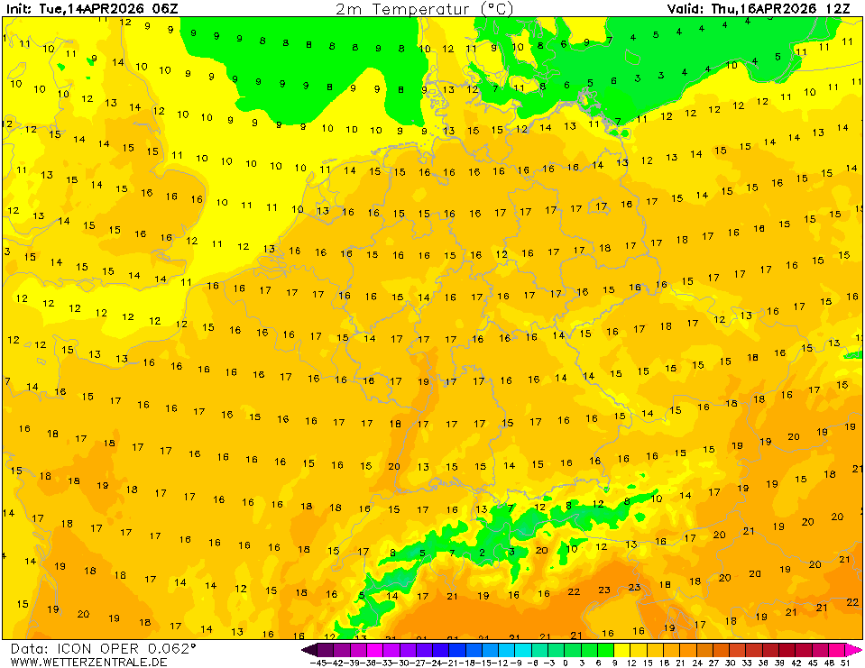 ICONCurrently selected. ICON is the global weather forecast of the German weather service (DWD) with a grid spacing of approx. 13 km globally (Europe nest: 6 km). Model output is available up to 180 hours ahead for the 0Z and 12Z runs, and up to 120 hours for the 6Z and 18Z runs.