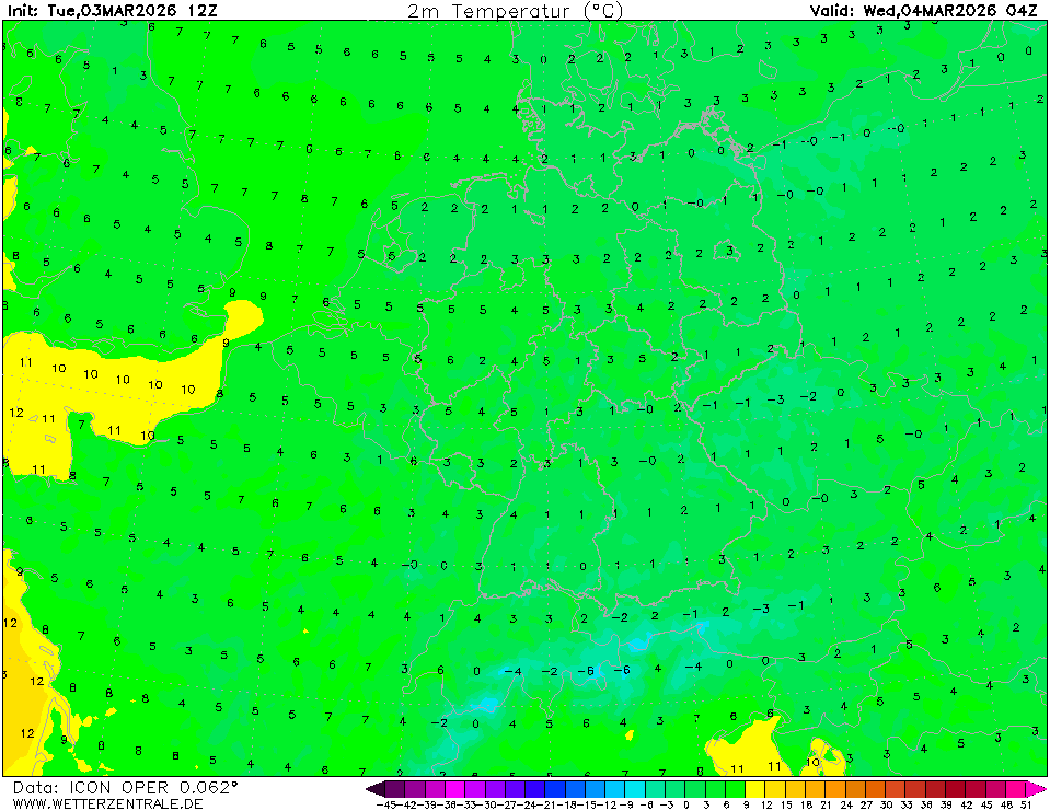 ICONCurrently selected. ICON is the global weather forecast of the German weather service (DWD) with a grid spacing of approx. 13 km globally (Europe nest: 6 km). Model output is available up to 180 hours ahead for the 0Z and 12Z runs, and up to 120 hours for the 6Z and 18Z runs.