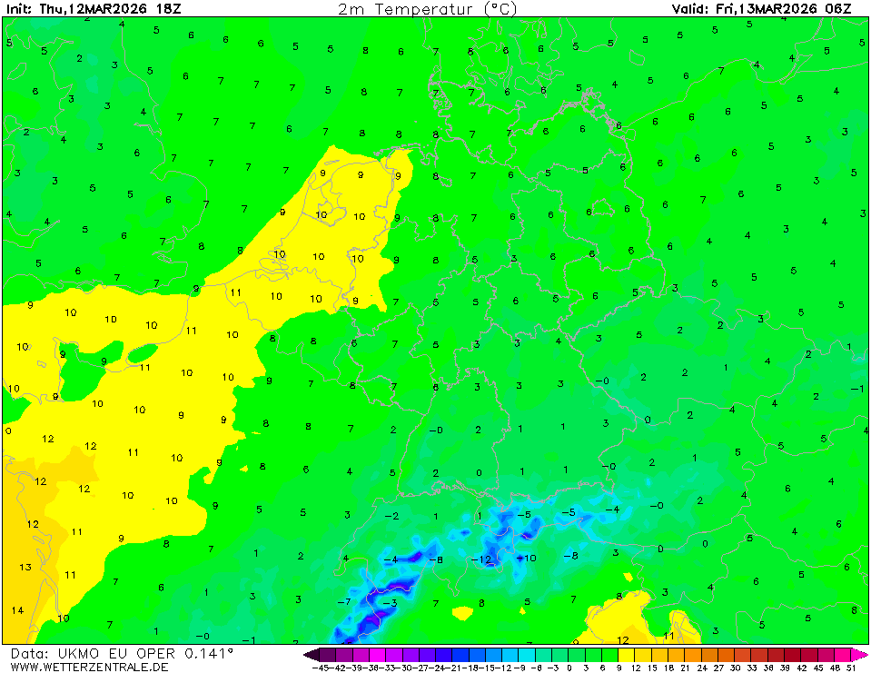 ICONThe selected variable and region is available, but not for 2026-02-08, 06:00. You will switch back to the first available time step. ICON is the global weather forecast of the German weather service (DWD) with a grid spacing of approx. 13 km globally (Europe nest: 6 km). Model output is available up to 180 hours ahead for the 0Z and 12Z runs, and up to 120 hours for the 6Z and 18Z runs.