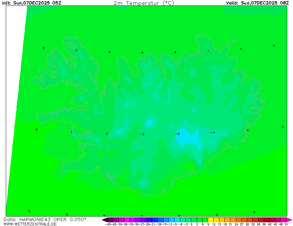 HARMONIE (KNMI-EU)Currently selected. HARMONIE is developed in a european consortium and this is the output provided by the KNMI at the supercomputing facilities in Iceland. The output from Cy43 is available at a rotated lat-lon grid and regridded at our server to a grid spacing of 0.05 degree. These data are the raw data provided by the KNMI. The model is reinitialized every hour and run up to 60 hrs ahead.