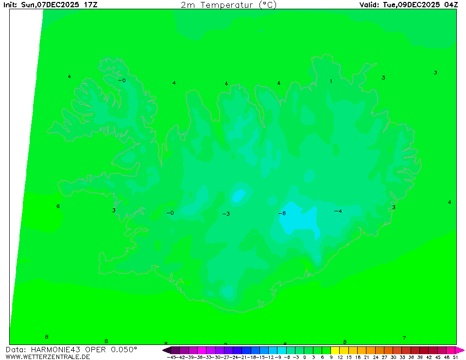 HARMONIE (KNMI-EU)Currently selected. HARMONIE is developed in a european consortium and this is the output provided by the KNMI at the supercomputing facilities in Iceland. The output from Cy43 is available at a rotated lat-lon grid and regridded at our server to a grid spacing of 0.05 degree. These data are the raw data provided by the KNMI. The model is reinitialized every hour and run up to 60 hrs ahead.