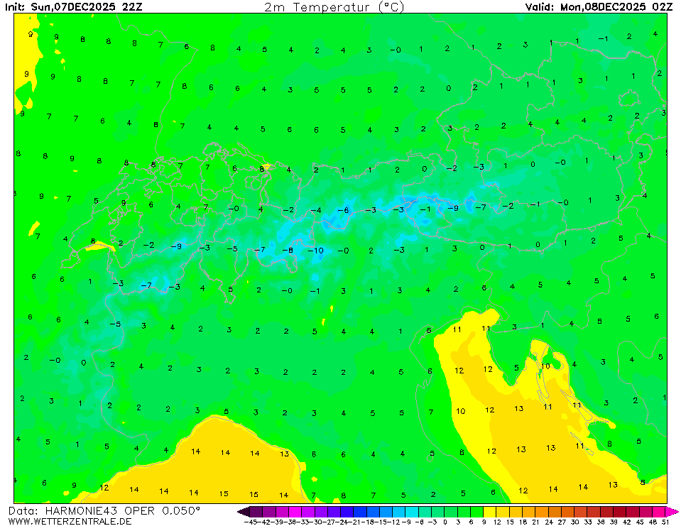 WRFThe selected time, variable and region is available for this model. WRF (Weather Research and Forecasting model) is a freely available weather forecast model. WRF version 3.9 is run on the WZ servers and offers 4 forecasts per day up to 72 hours. It is currently run with a horizontal grid spacing of 5 km and uses the WRF single-moment 3 class microphysics scheme, the YSU PBL scheme and the Dudhia radiation scheme.
