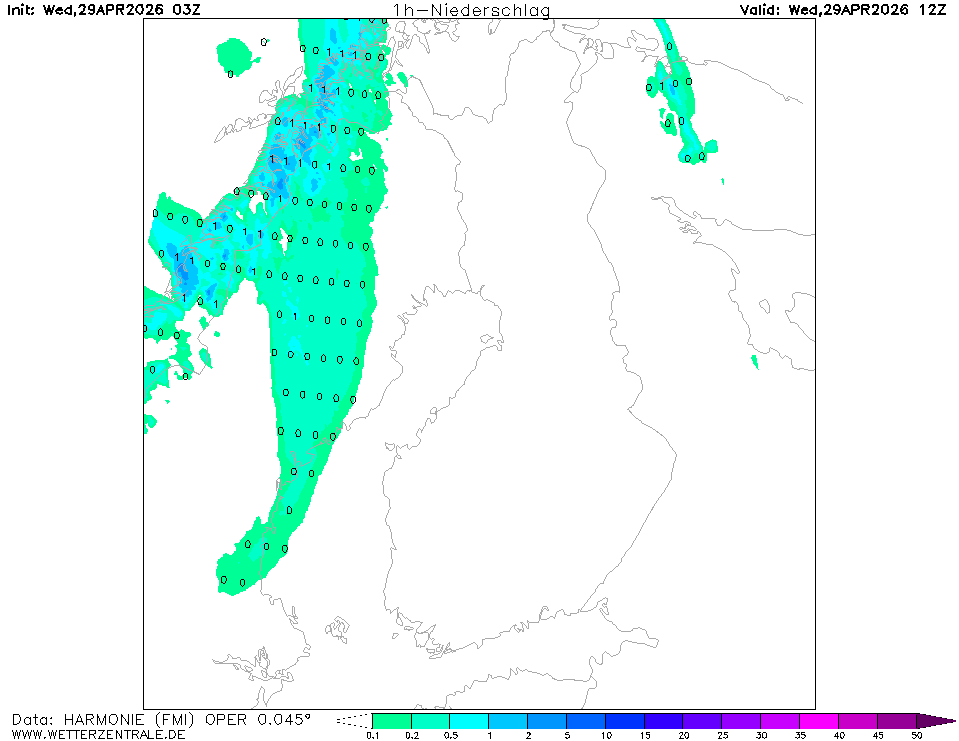 HARMONIE (FMI)Currently selected. HARMONIE is a mesoscale weather prediction model managed by the Finnish Meteorological Institute. The data is updated 4 times a day at 00, 06, 12 and 18 UTC. Corresponding model runs are available roughly five hours after analysis time (~ after model run has started).