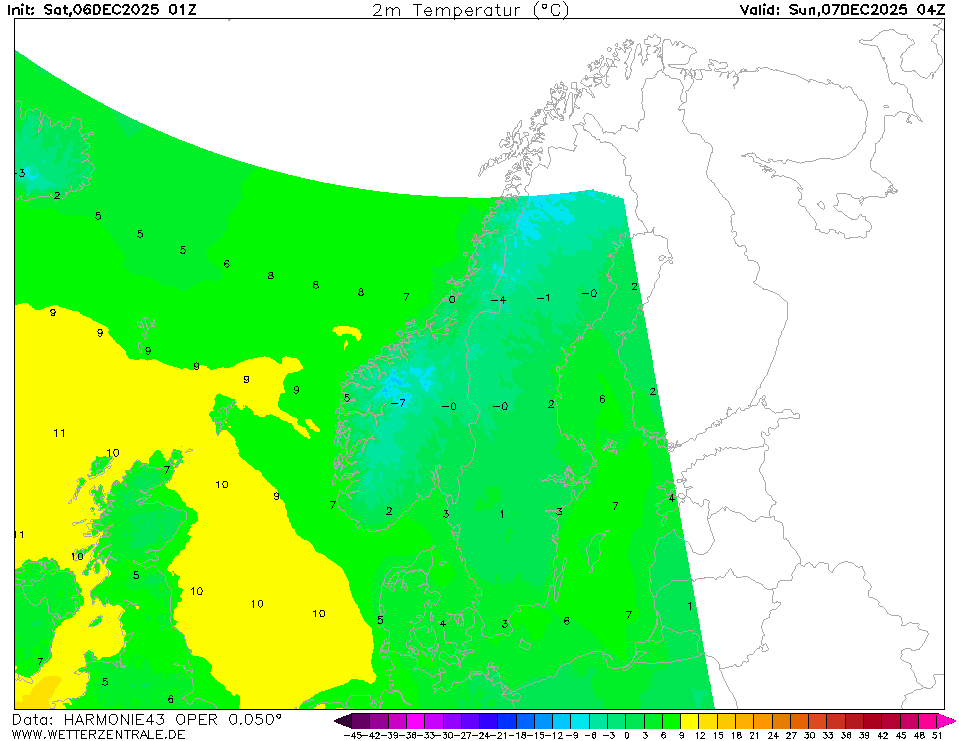 HARMONIE (FMI)The selected time, variable and region is available for this model. HARMONIE is a mesoscale weather prediction model managed by the Finnish Meteorological Institute. The data is updated 4 times a day at 00, 06, 12 and 18 UTC. Corresponding model runs are available roughly five hours after analysis time (~ after model run has started).