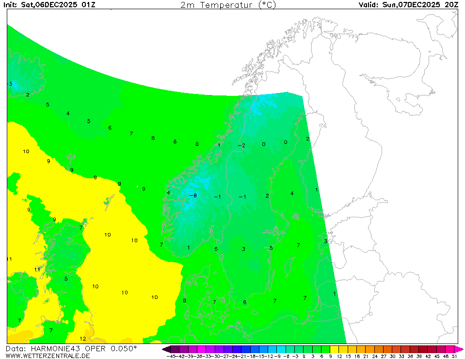 HARMONIE (FMI)The selected time, variable and region is available for this model. HARMONIE is a mesoscale weather prediction model managed by the Finnish Meteorological Institute. The data is updated 4 times a day at 00, 06, 12 and 18 UTC. Corresponding model runs are available roughly five hours after analysis time (~ after model run has started).