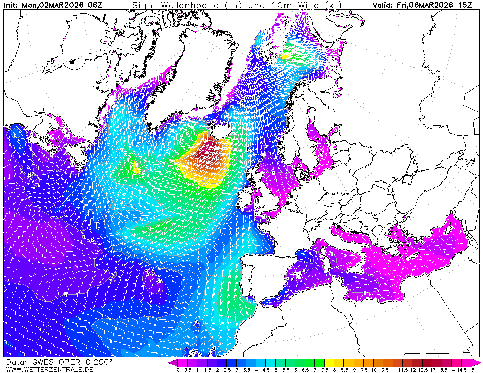 GWESActuele selectie. Hier bieden we golfprognoses aan van het atmospherische GFS model. Het is gekoppeld met de atmosfeer en het wordt 4 keer per dag uitgevoerd op basis van 0000, 0600, 1200 en 1800 UTC starttijd en biedt voorspellingen tot 384 uur.