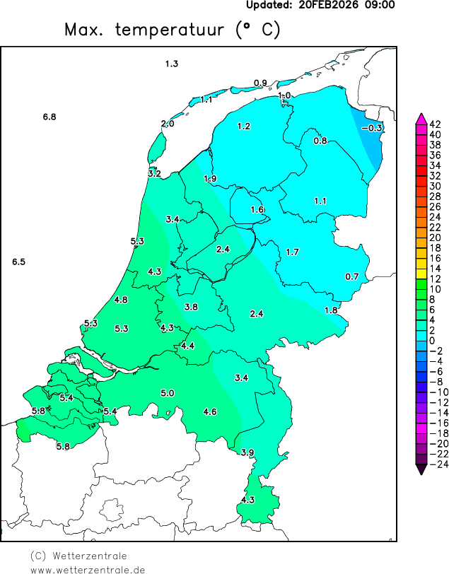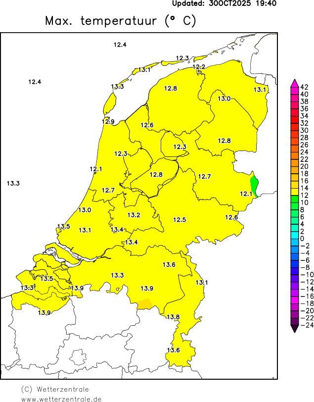 De Nederlandse weergegevens zijn afkomstig van het Koninklijk Nederlands Meteorologisch Instituut (KNMI). Klik hier voor meer informatie over deze gegevens. De gegevens worden dagelijks om 9:00 geupdate. De neerslag en sneeuwkaarten komen pas na enkele weken beschikbaar, omdat het KNMI deze gegevens eerst valideert.