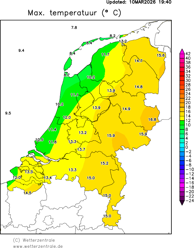 De Nederlandse weergegevens zijn afkomstig van het Koninklijk Nederlands Meteorologisch Instituut (KNMI). Klik hier voor meer informatie over deze gegevens. De gegevens worden dagelijks om 9:00 geupdate. De neerslag en sneeuwkaarten komen pas na enkele weken beschikbaar, omdat het KNMI deze gegevens eerst valideert.