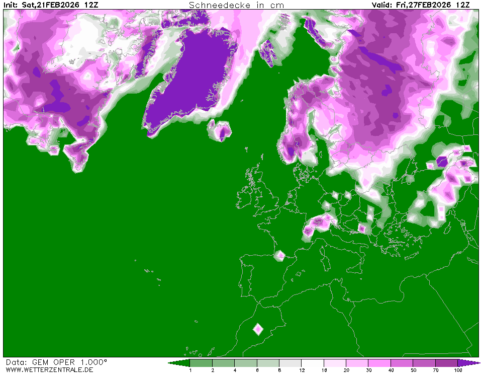 ICONDie ausgewählte Zeit, Parameter und Region ist für dieses Modell verfügbar. ICON ist das globale Wettervorhersagemodell des Deutschen Wetterdienstes (DWD). Vorhersagen bis zu 120 Stunden sind verfügbar. Horizontale Auflösung 13 bzw. 6 km, 90 Modellflächen mit Oberrand in 75 km, der Output am regulären Gitter erfolgt derzeit auf 0.125° global und 0.062° für Europa. Die Karten werden 4 mal am Tag aktualisiert (4:15,10:15, 16:15 und 22:15 UTC).