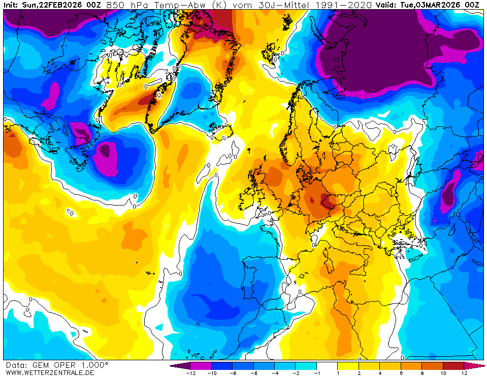 GEMJetzt ausgewählt. GEM ist das kanadische globale Wettervorhersagemodell und rechnet bis 10 Tage in die Zukunft.