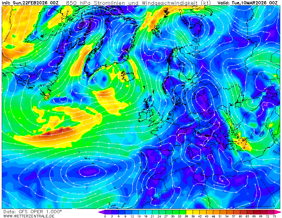 GFSJetzt ausgewählt. GFS ist das globale Wettervorhersagemodell des US-Wetterdienstes. Es bietet eine Vielzahl von Parametern für die nächsten 15 Tage und diese werden in Form von Karten und Diagrammen bereitgestellt. Die Wetterzentrale-Karten benutzen die 0, 6, 12 und 18 UTC Daten und sind normalerweise um 5, 11, 17 und 23 UTC fertig. Die Auflösung des verwendeten Gitters beträgt intern ca. 28 km