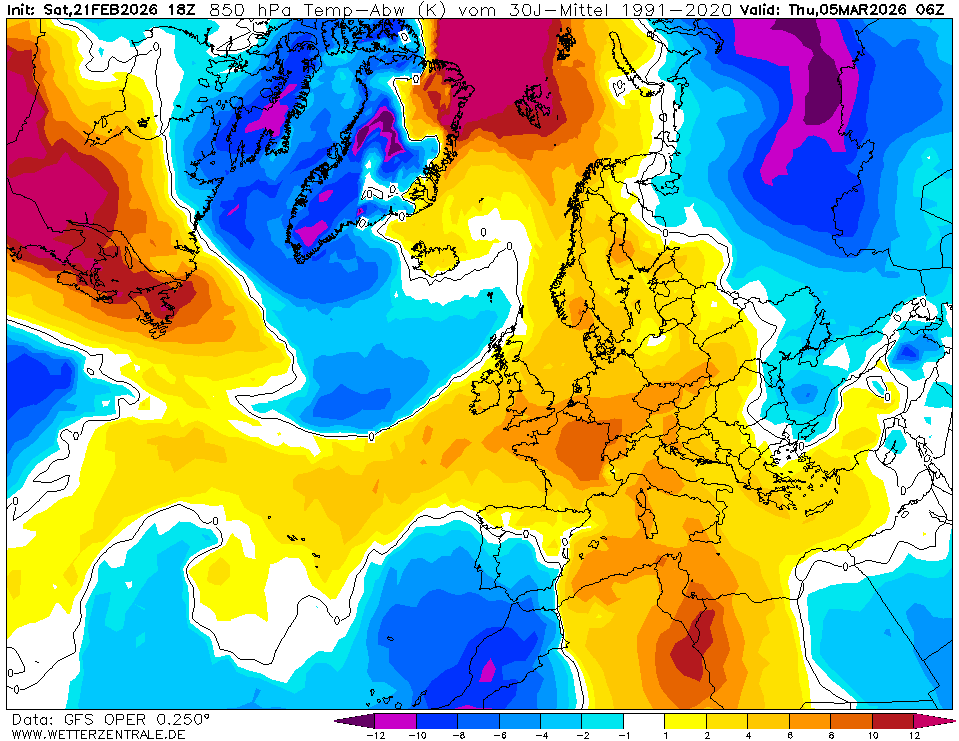 GFSJetzt ausgewählt. GFS ist das globale Wettervorhersagemodell des US-Wetterdienstes. Es bietet eine Vielzahl von Parametern für die nächsten 15 Tage und diese werden in Form von Karten und Diagrammen bereitgestellt. Die Wetterzentrale-Karten benutzen die 0, 6, 12 und 18 UTC Daten und sind normalerweise um 5, 11, 17 und 23 UTC fertig. Die Auflösung des verwendeten Gitters beträgt intern ca. 28 km