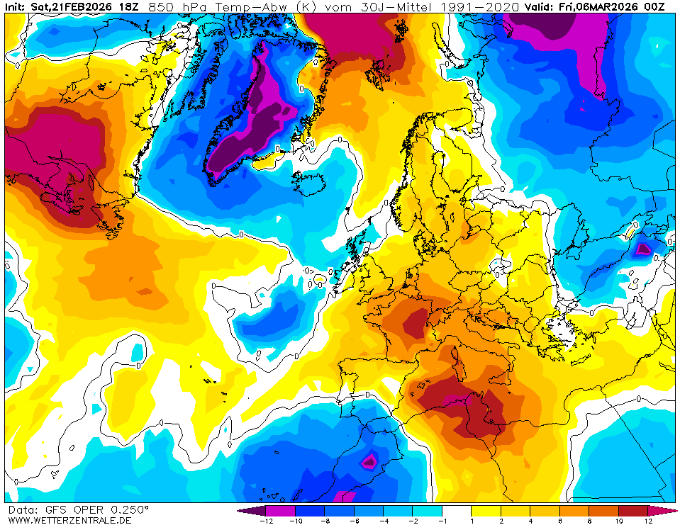 GFSJetzt ausgewählt. GFS ist das globale Wettervorhersagemodell des US-Wetterdienstes. Es bietet eine Vielzahl von Parametern für die nächsten 15 Tage und diese werden in Form von Karten und Diagrammen bereitgestellt. Die Wetterzentrale-Karten benutzen die 0, 6, 12 und 18 UTC Daten und sind normalerweise um 5, 11, 17 und 23 UTC fertig. Die Auflösung des verwendeten Gitters beträgt intern ca. 28 km