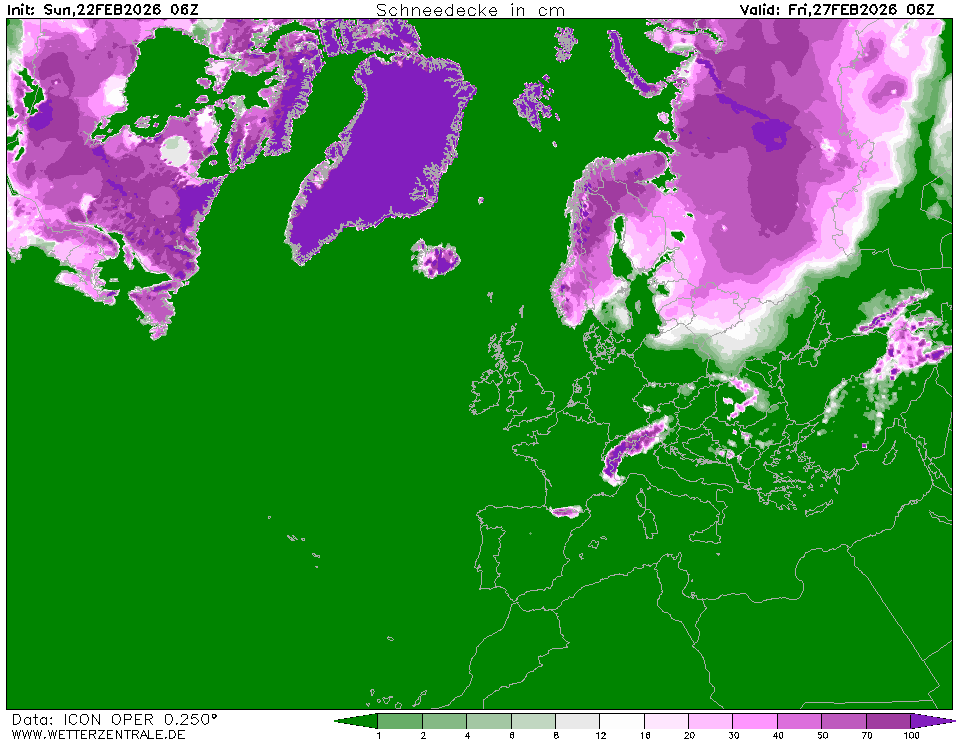 ICONJetzt ausgewählt. ICON ist das globale Wettervorhersagemodell des Deutschen Wetterdienstes (DWD). Vorhersagen bis zu 120 Stunden sind verfügbar. Horizontale Auflösung 13 bzw. 6 km, 90 Modellflächen mit Oberrand in 75 km, der Output am regulären Gitter erfolgt derzeit auf 0.125° global und 0.062° für Europa. Die Karten werden 4 mal am Tag aktualisiert (4:15,10:15, 16:15 und 22:15 UTC).