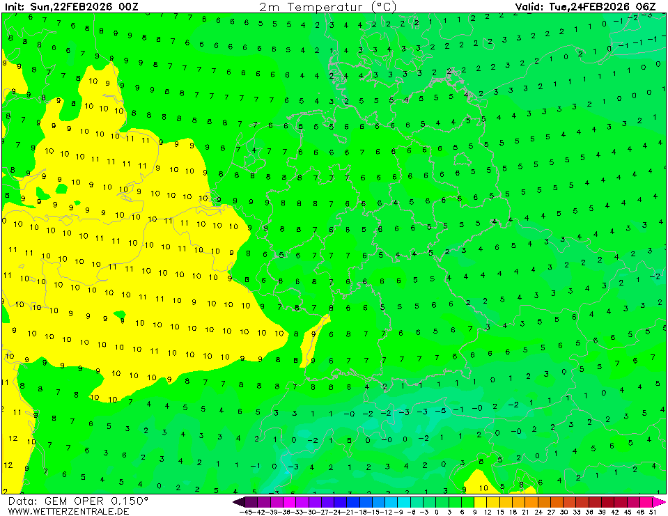 GEMJetzt ausgewählt. GEM ist das kanadische globale Wettervorhersagemodell und rechnet bis 10 Tage in die Zukunft.