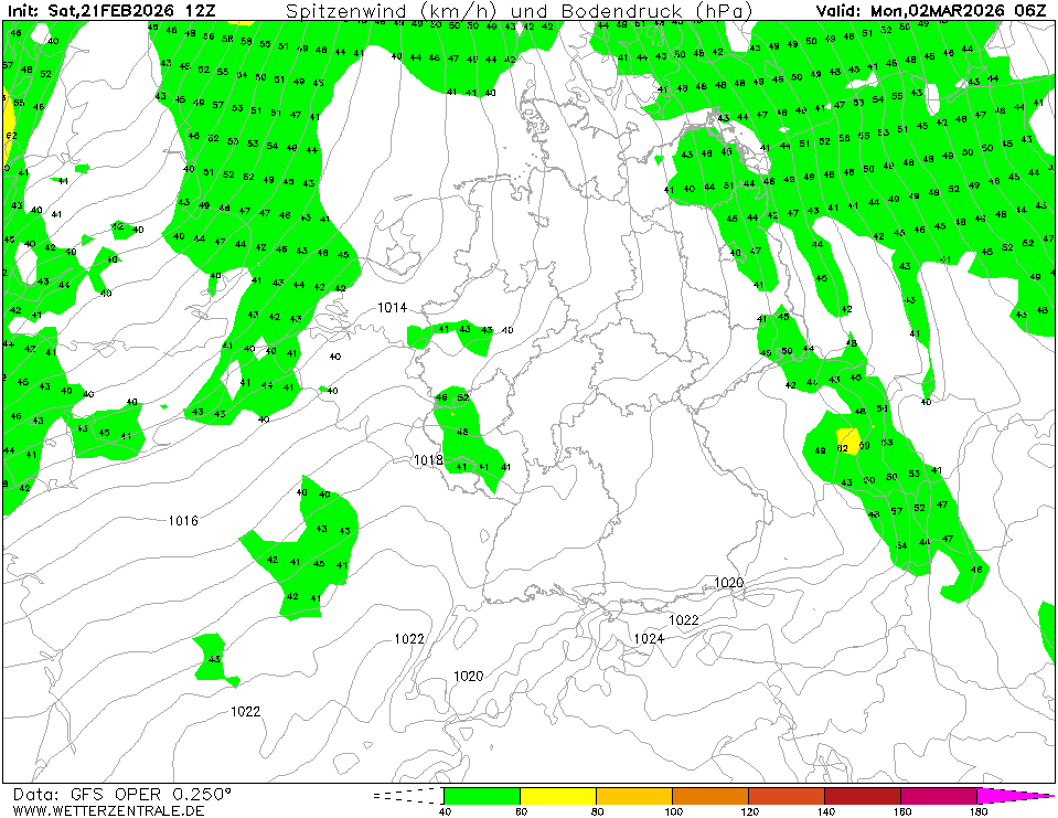 GFSJetzt ausgewählt. GFS ist das globale Wettervorhersagemodell des US-Wetterdienstes. Es bietet eine Vielzahl von Parametern für die nächsten 15 Tage und diese werden in Form von Karten und Diagrammen bereitgestellt. Die Wetterzentrale-Karten benutzen die 0, 6, 12 und 18 UTC Daten und sind normalerweise um 5, 11, 17 und 23 UTC fertig. Die Auflösung des verwendeten Gitters beträgt intern ca. 28 km