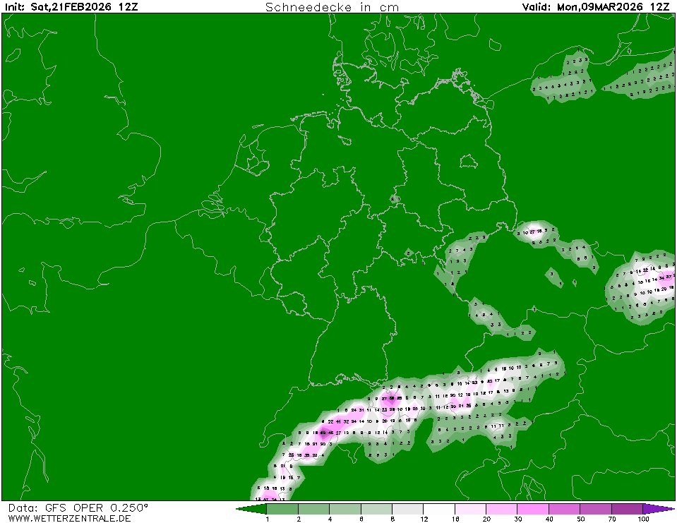 GFSJetzt ausgewählt. GFS ist das globale Wettervorhersagemodell des US-Wetterdienstes. Es bietet eine Vielzahl von Parametern für die nächsten 15 Tage und diese werden in Form von Karten und Diagrammen bereitgestellt. Die Wetterzentrale-Karten benutzen die 0, 6, 12 und 18 UTC Daten und sind normalerweise um 5, 11, 17 und 23 UTC fertig. Die Auflösung des verwendeten Gitters beträgt intern ca. 28 km