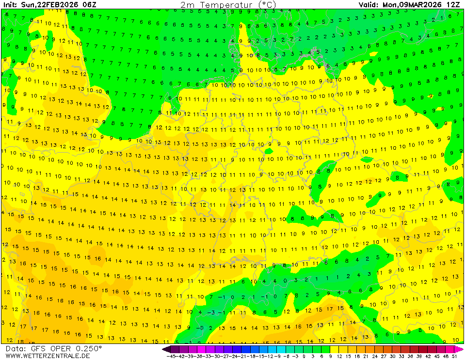 GFSJetzt ausgewählt. GFS ist das globale Wettervorhersagemodell des US-Wetterdienstes. Es bietet eine Vielzahl von Parametern für die nächsten 15 Tage und diese werden in Form von Karten und Diagrammen bereitgestellt. Die Wetterzentrale-Karten benutzen die 0, 6, 12 und 18 UTC Daten und sind normalerweise um 5, 11, 17 und 23 UTC fertig. Die Auflösung des verwendeten Gitters beträgt intern ca. 28 km