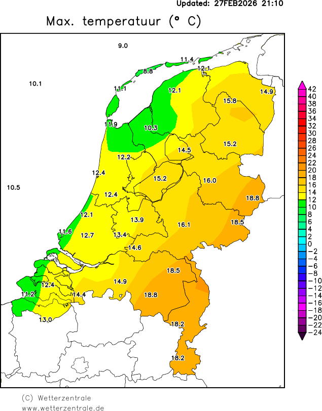 De Nederlandse weergegevens zijn afkomstig van het Koninklijk Nederlands Meteorologisch Instituut (KNMI). Klik hier voor meer informatie over deze gegevens. De gegevens worden dagelijks om 9:00 geupdate. De neerslag en sneeuwkaarten komen pas na enkele weken beschikbaar, omdat het KNMI deze gegevens eerst valideert.