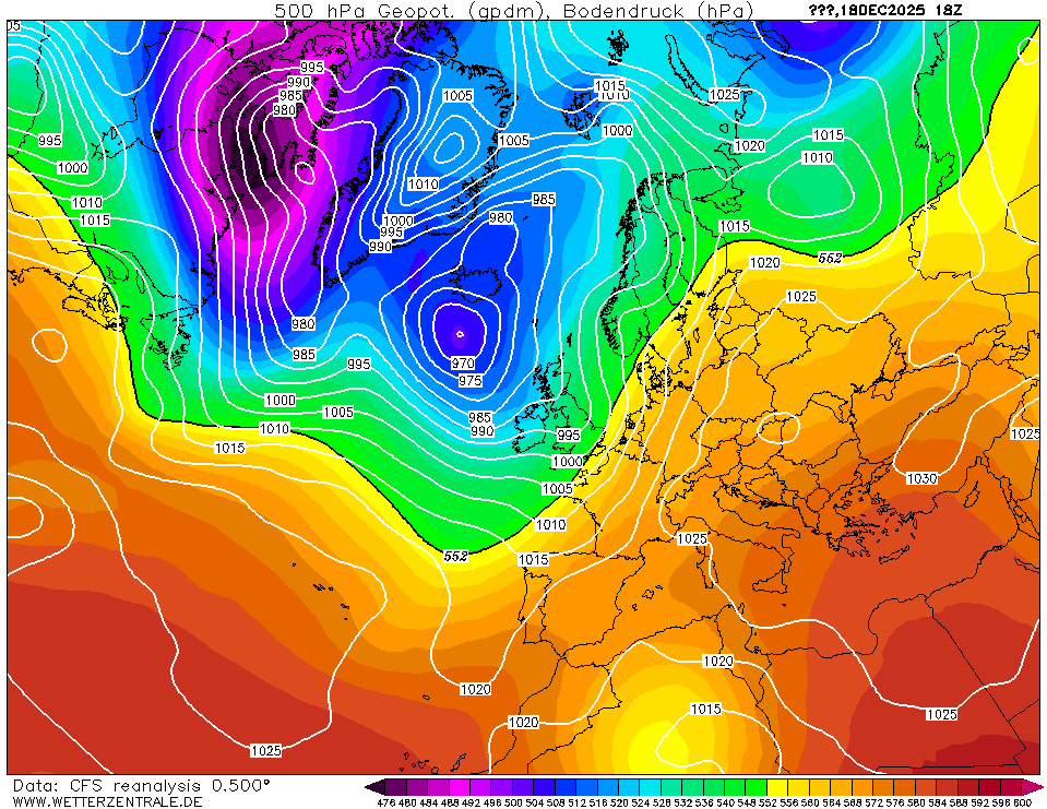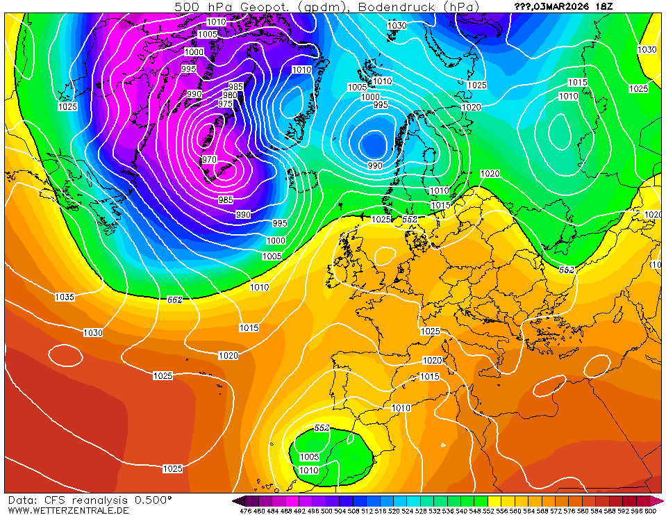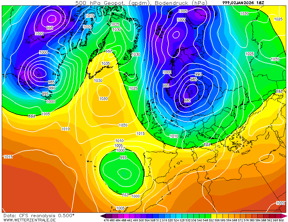 NCEP Climate Forecast System Reanalysis (CFSRv1) is een gekoppeld atmosfeer-oceaan-landoppervlak-zeeijs systeem om de beste schatting te geven over de 32-jarige periode 1979-2011. Na deze datum gebruikt wetterzentrale de CFSRv2 data (0,5 graad resolutie) die in realtime beschikbaar is. Technische details zijn beschikbaar in