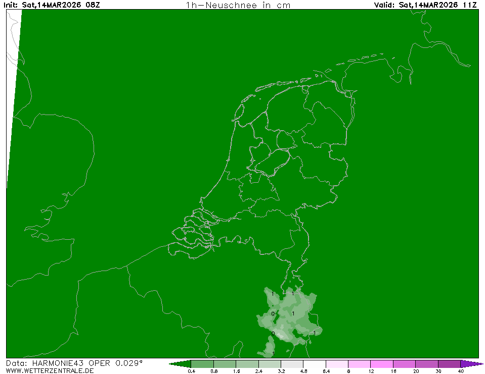 HARMONIE (KNMI-NL)Actuele selectie. HARMONIE is ontwikkeld in een Europees consortium en dit is de output van het KNMI bij de supercomputerfaciliteiten in IJsland. De uitvoer van Cy43 is beschikbaar op een rasterafstand van 0,029 graden. Deze gegevens zijn de ruwe gegevens van het KNMI. Het model wordt elk uur opnieuw geïnitialiseerd en loopt tot 60 uur vooruit.