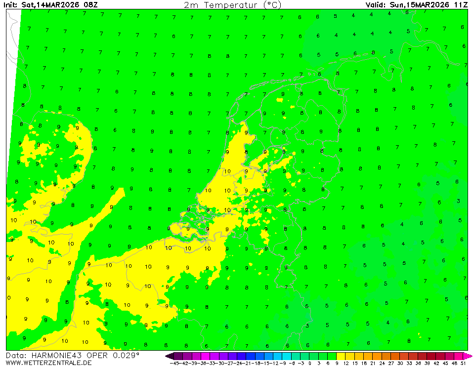 HARMONIE (KNMI-NL)Actuele selectie. HARMONIE is ontwikkeld in een Europees consortium en dit is de output van het KNMI bij de supercomputerfaciliteiten in IJsland. De uitvoer van Cy43 is beschikbaar op een rasterafstand van 0,029 graden. Deze gegevens zijn de ruwe gegevens van het KNMI. Het model wordt elk uur opnieuw geïnitialiseerd en loopt tot 60 uur vooruit.