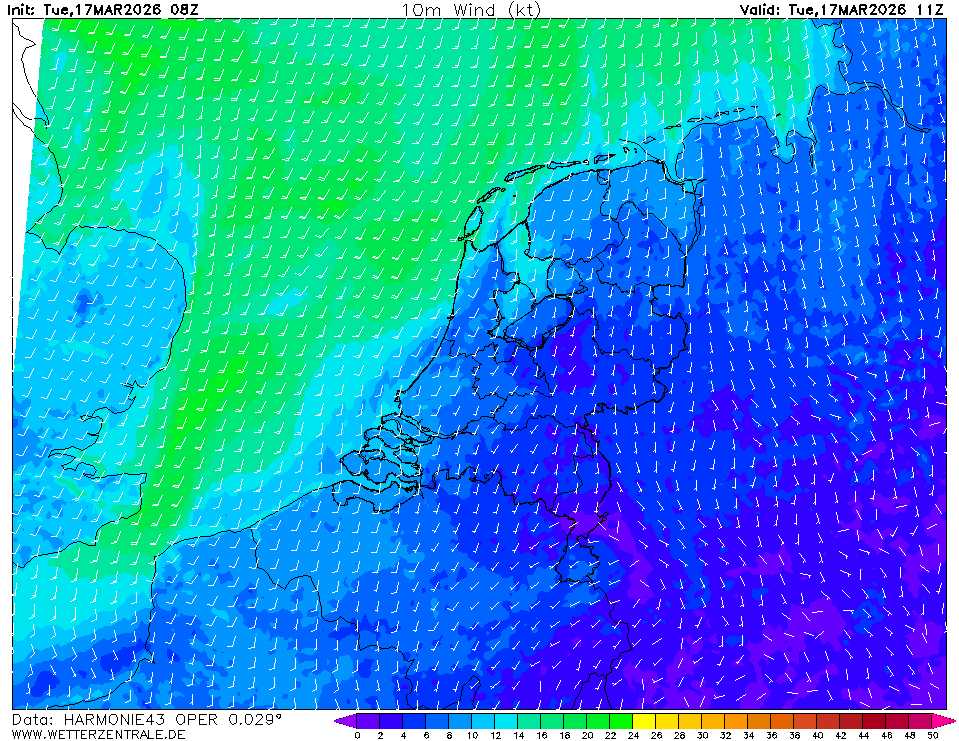HARMONIE (KNMI-NL)Actuele selectie. HARMONIE is ontwikkeld in een Europees consortium en dit is de output van het KNMI bij de supercomputerfaciliteiten in IJsland. De uitvoer van Cy43 is beschikbaar op een rasterafstand van 0,029 graden. Deze gegevens zijn de ruwe gegevens van het KNMI. Het model wordt elk uur opnieuw geïnitialiseerd en loopt tot 60 uur vooruit.