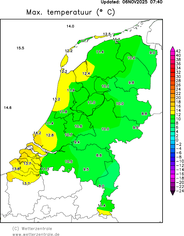 De Nederlandse weergegevens zijn afkomstig van het Koninklijk Nederlands Meteorologisch Instituut (KNMI). Klik hier voor meer informatie over deze gegevens. De gegevens worden dagelijks om 9:00 geupdate. De neerslag en sneeuwkaarten komen pas na enkele weken beschikbaar, omdat het KNMI deze gegevens eerst valideert.