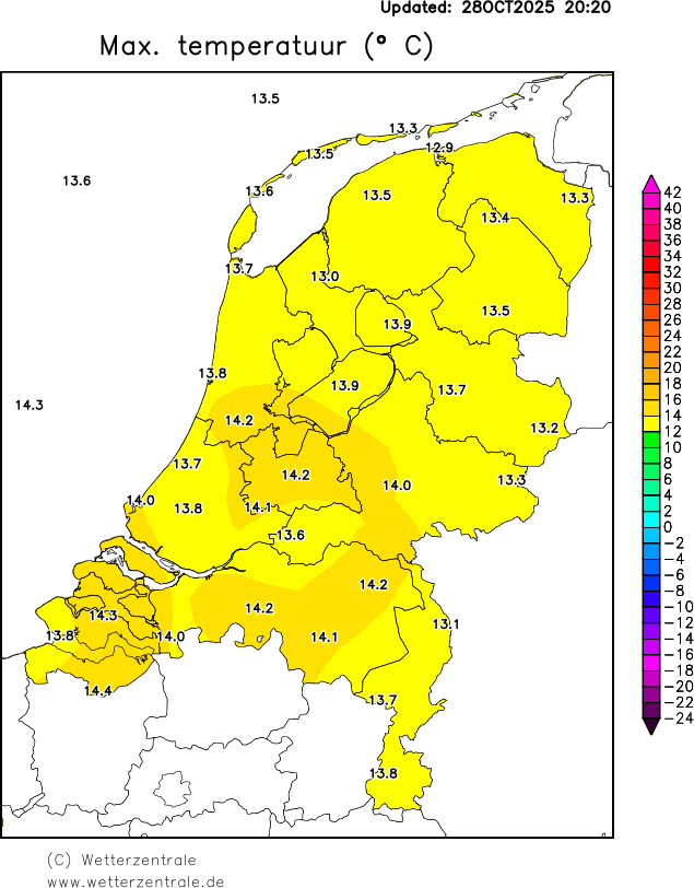De Nederlandse weergegevens zijn afkomstig van het Koninklijk Nederlands Meteorologisch Instituut (KNMI). Klik hier voor meer informatie over deze gegevens. De gegevens worden dagelijks om 9:00 geupdate. De neerslag en sneeuwkaarten komen pas na enkele weken beschikbaar, omdat het KNMI deze gegevens eerst valideert.