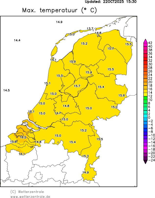 De Nederlandse weergegevens zijn afkomstig van het Koninklijk Nederlands Meteorologisch Instituut (KNMI). Klik hier voor meer informatie over deze gegevens. De gegevens worden dagelijks om 9:00 geupdate. De neerslag en sneeuwkaarten komen pas na enkele weken beschikbaar, omdat het KNMI deze gegevens eerst valideert.