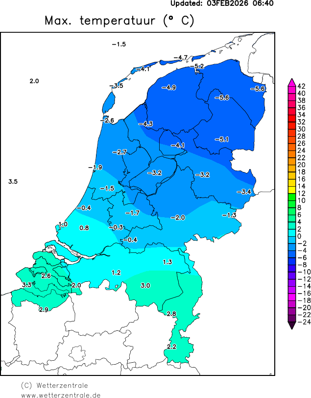 De Nederlandse weergegevens zijn afkomstig van het Koninklijk Nederlands Meteorologisch Instituut (KNMI). Klik hier voor meer informatie over deze gegevens. De gegevens worden dagelijks om 9:00 geupdate. De neerslag en sneeuwkaarten komen pas na enkele weken beschikbaar, omdat het KNMI deze gegevens eerst valideert.
