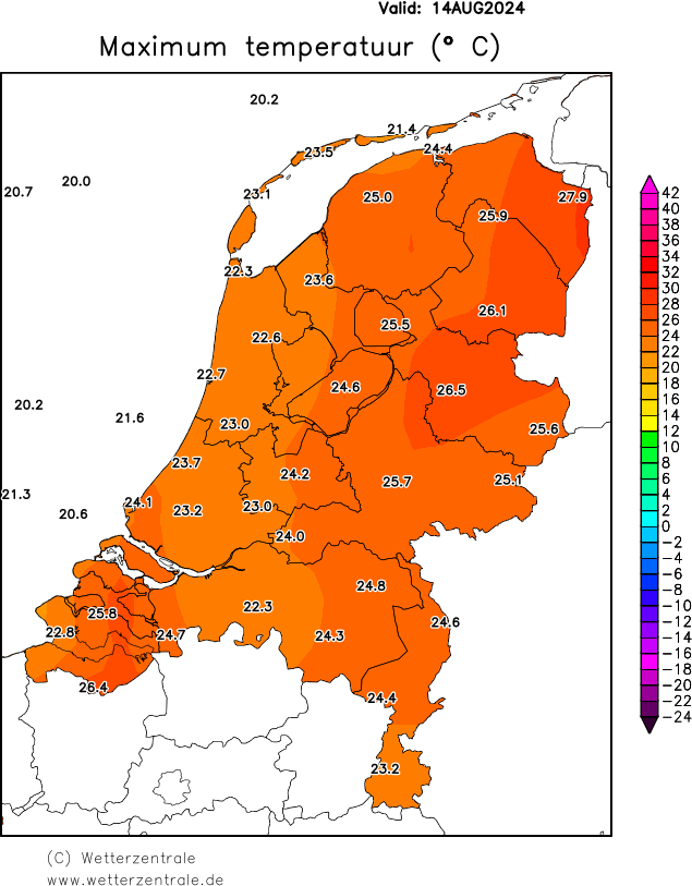 De Nederlandse weergegevens zijn afkomstig van het Koninklijk Nederlands Meteorologisch Instituut (KNMI). Klik hier voor meer informatie over deze gegevens. De gegevens worden dagelijks om 9:00 geupdate. De neerslag en sneeuwkaarten komen pas na enkele weken beschikbaar, omdat het KNMI deze gegevens eerst valideert.