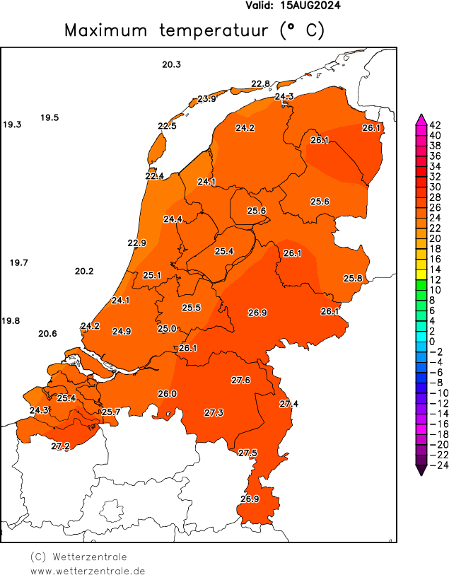 De Nederlandse weergegevens zijn afkomstig van het Koninklijk Nederlands Meteorologisch Instituut (KNMI). Klik hier voor meer informatie over deze gegevens. De gegevens worden dagelijks om 9:00 geupdate. De neerslag en sneeuwkaarten komen pas na enkele weken beschikbaar, omdat het KNMI deze gegevens eerst valideert.