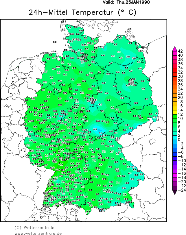 Wetterdaten von Donnerstag, 25. Januar 1990